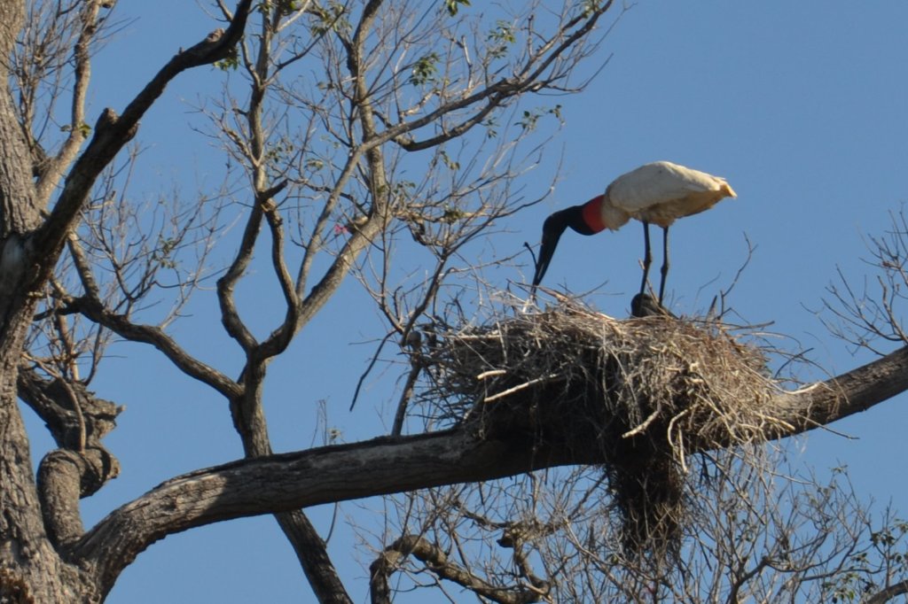 Ein Tuiuiu beim Nestbau. Wenn man gut hinschaut, sieht man auch die Brut im Nest. Foto: Sylvia Montag Veröffentlicht 1. August 2016 mit 1024 × 682 in Das Pantanal ist so, wie man sich den Amazonas vorstellt