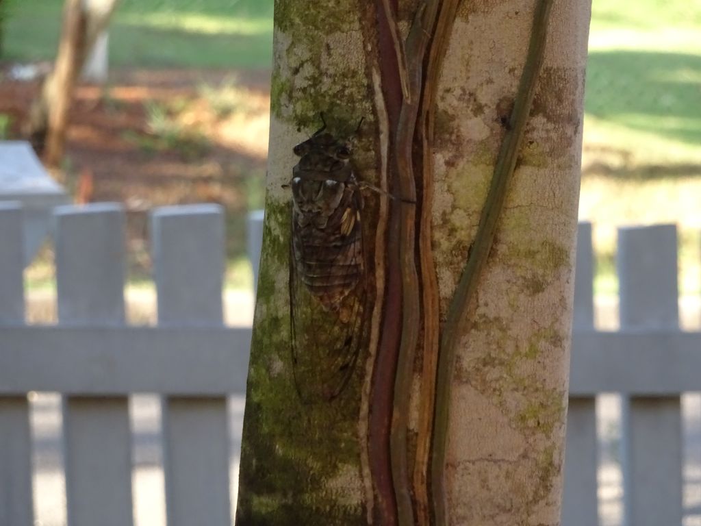 Jeder, der einmal in einem mediterranen Land im Hochsommer war, kennt sie: Singzikaden. Doch im Vergleich zu der Lautstärke der Tiere in Brasilien befinden sich die Artgenossen am Mittelmeer auf Flüsterniveau. Besonders in der Dämmerung dreht das Orchester um uns herum voll auf.