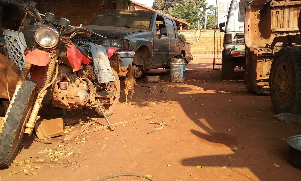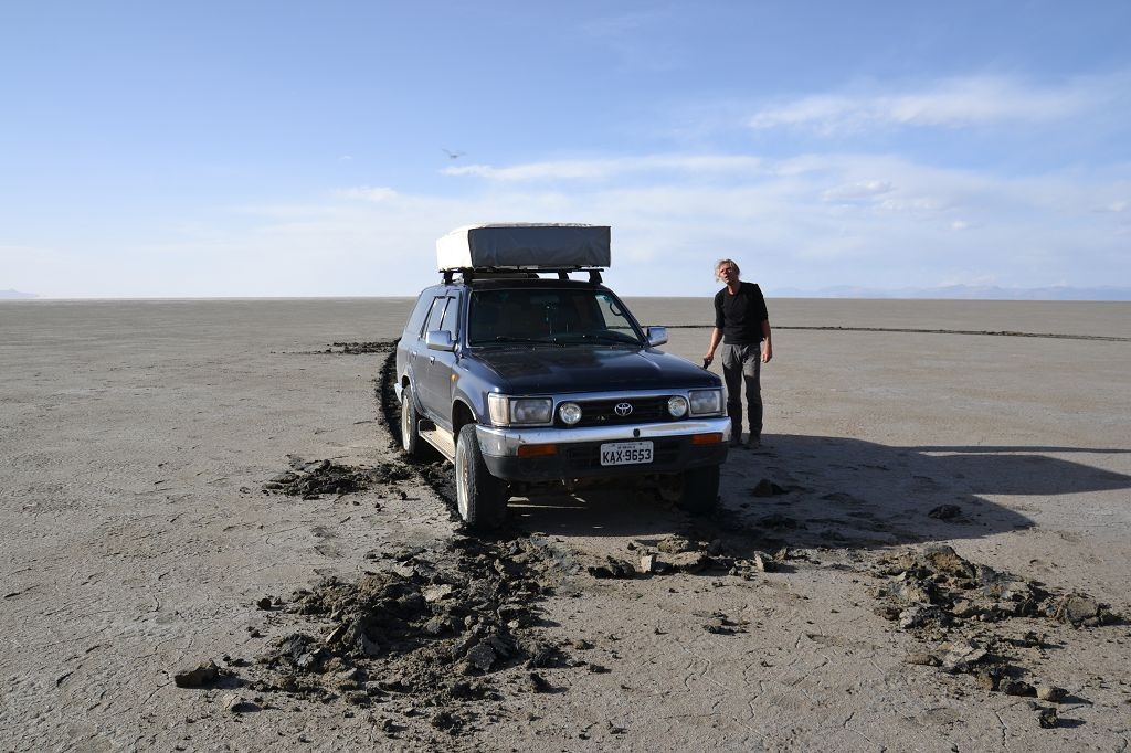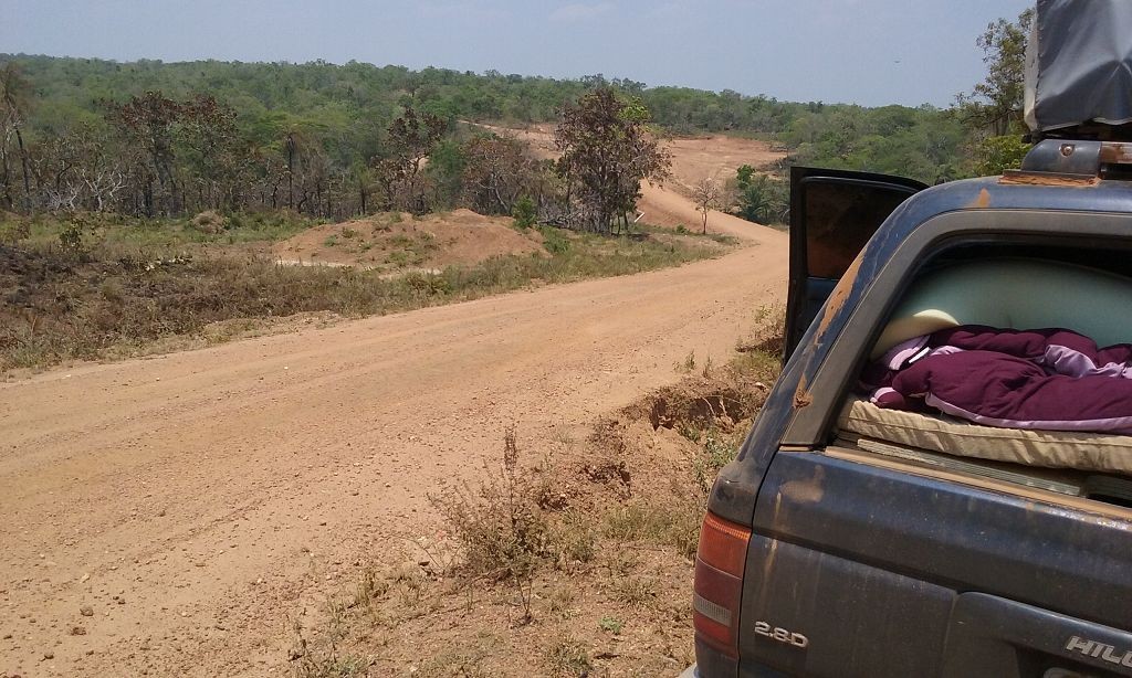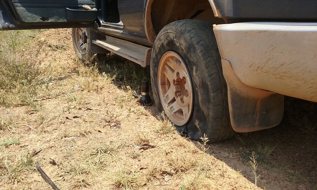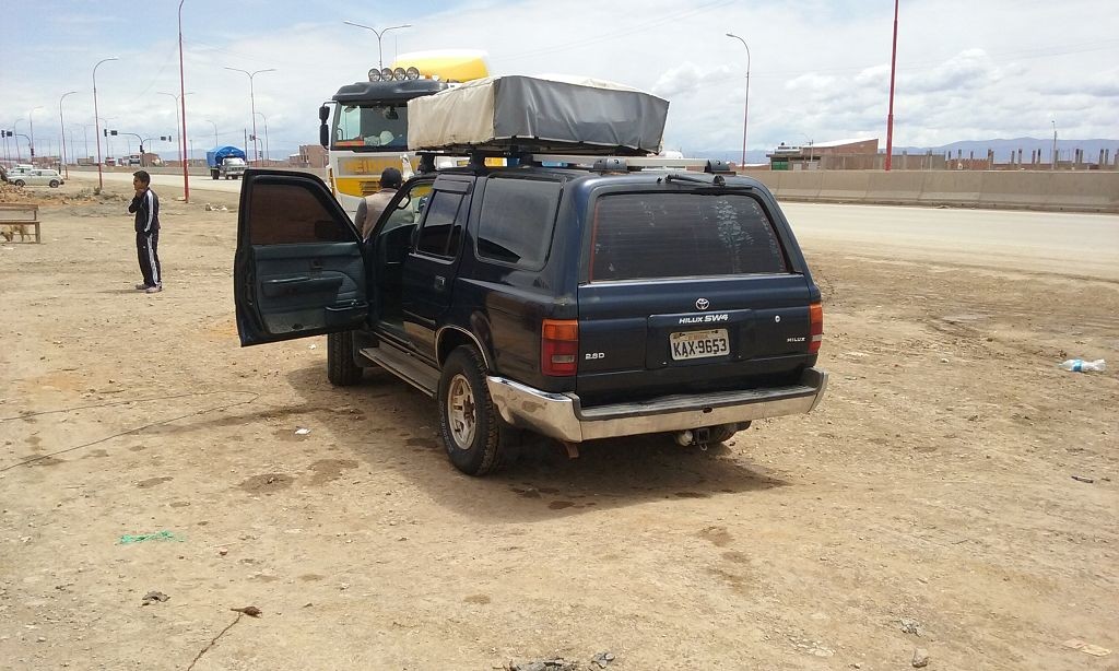 Die Schotter- und Erdpisten zerstören auf Dauer unser Auto. Wir haben das hintere Gummi verloren, das den Auspuff am Wagen hält. Die improvisierte Notlösung aus Schlauchschellen und Kabelbindern hält das Rohr zwar in Position, macht aber bei jedem Schlagloch und bei jeder Bodenwelle ein fieses metallisches Geräusch. Zudem funktioniert der Motor der Heckscheibe nur noch sporadisch, wir können die Heckklappe also nur noch öffnen, wenn der Gott der Fensterheber uns wohlgesonnen ist. Die Alternativlösung, das Be- und Entladen von innen, ist umständlich und kräftezehrend.