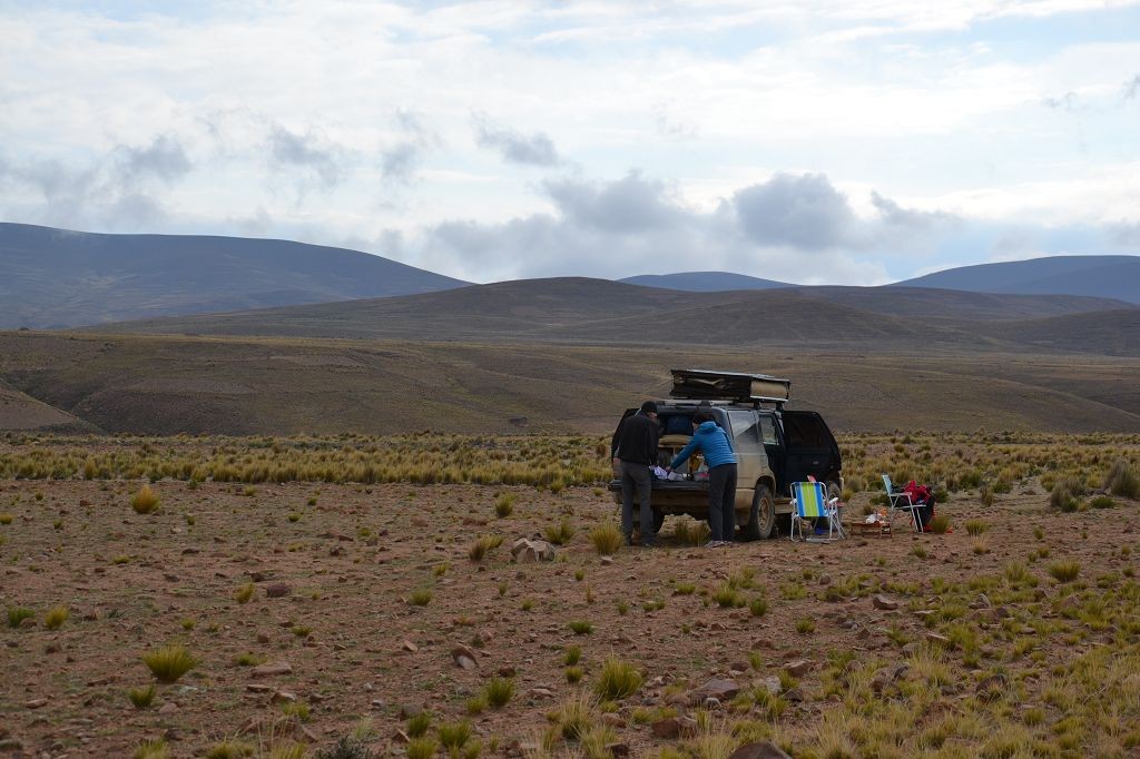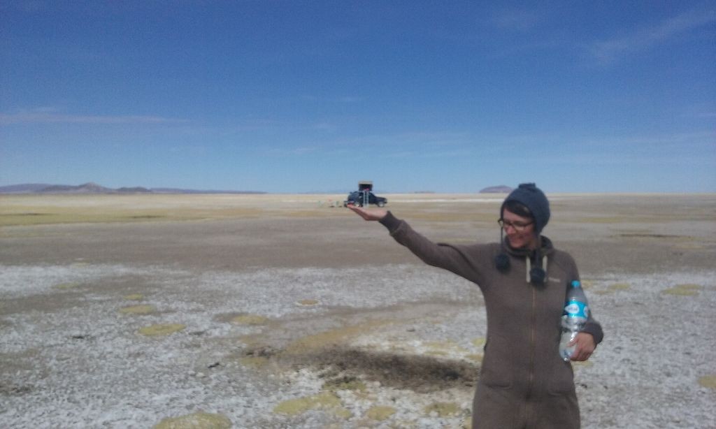 Selbst in der Nähe des Äquators wird es auf 4.000 Höhenmetern nachts empfindlich kalt. Wir campen mindestens jede zweite Nacht. Das bedeutet, die Abende sind kurz, die Nächte frostig und das Aufstehen bedarf Überwindung. Während im Norden Boliviens in dieser Jahreszeit noch Regen, Hagel und Schnee dazukommen, scheint im Süden des Landes tagsüber noch regelmäßig die Sonne und beschert uns immerhin fast T-Shirt-Wärme.