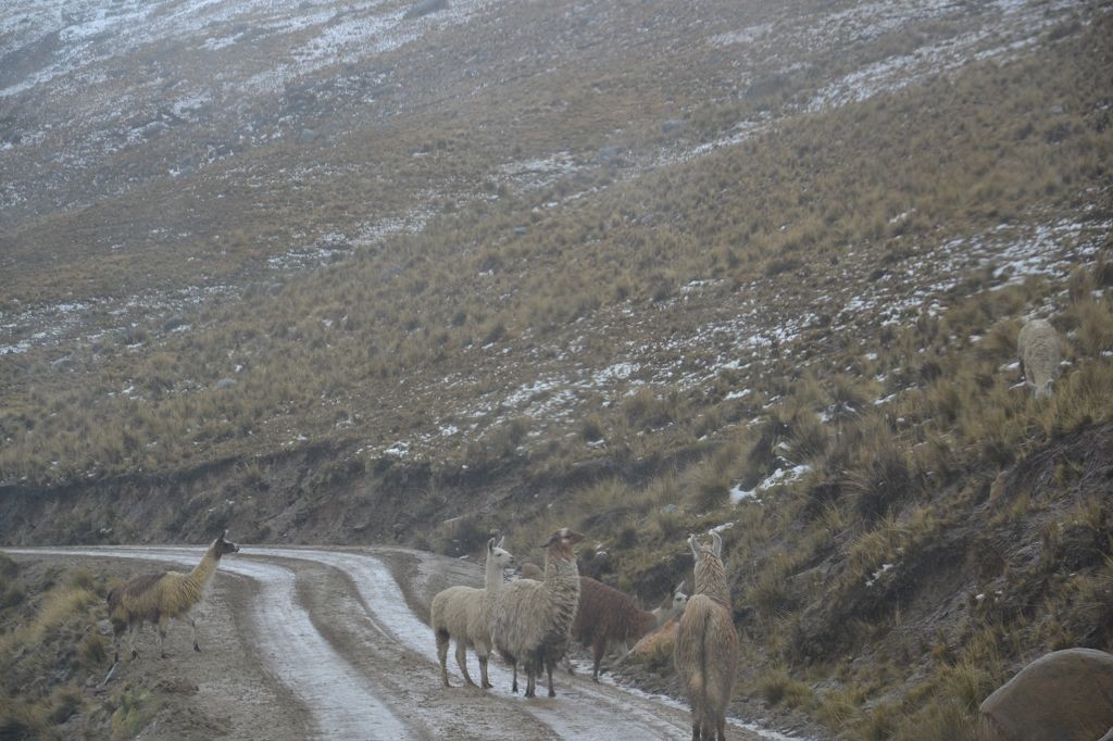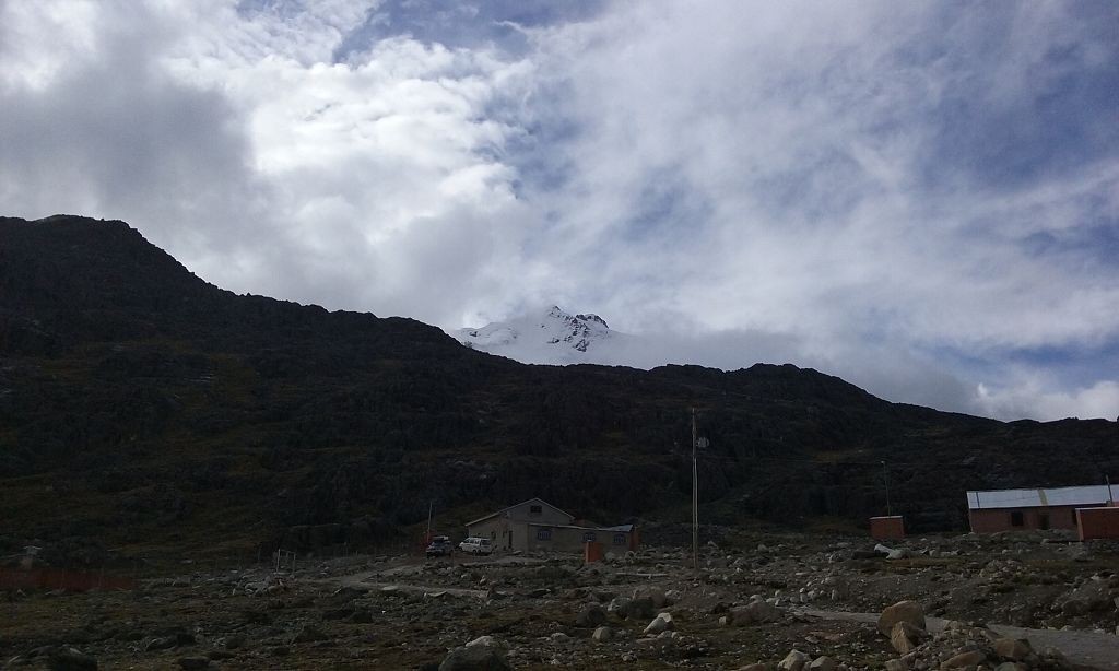 Da Sylvia und Katja nicht auf den Berg wollten bzw. konnten, war mein grober Plan, mich einer Gruppe von Bergsteigern anzuschließen. Tatsächlich trafen wir auf der Hütte vier junge Franzosen, die am Folgetag Richtung Gipfel aufbrechen wollten. Sie hätten mich auch mitgenommen, allerdings hatten sie in La Paz zwei Bergführer angeheuert und deren Richtlinie war, nur jeweils zwei Personen auf einmal zum Gipfel zu führen. Zudem sollte die Tour von etwas weniger als 1.300 Höhenmeter über zwei Tage dauern: Am ersten Tag nachtmittags circa drei Stunden bis zu einer weiteren Hütte auf 5.130 Höhenmeter und dann am Folgetag ab Mitternacht den Rest auf den Gipfel und wieder hinunter bis zum Zonga-Pass. Dieses Vorgehen machte insofern Sinn, da es um diese Jahreszeit nur ganz früh morgens freie Sicht gab. Ab frühen Vormittag hüllte sich der Berg in eine dicke Wolkenschicht.