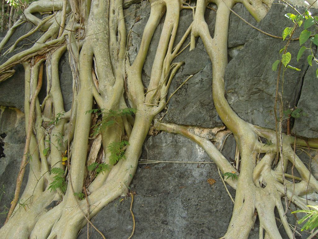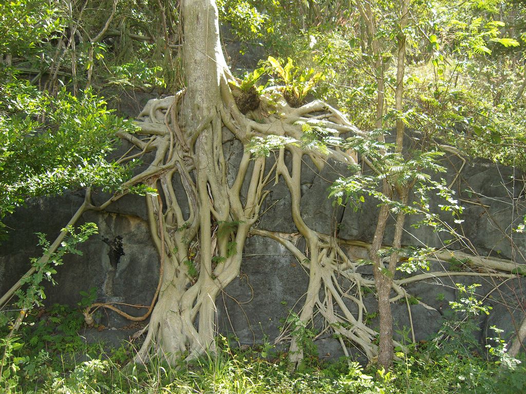Schön und gut, doch die Vegetation vor dem Felsen war so dicht, dass wir noch nicht einmal bis zum Felsen vordringen konnten. Dafür war das Dickicht sehr beeindruckend.