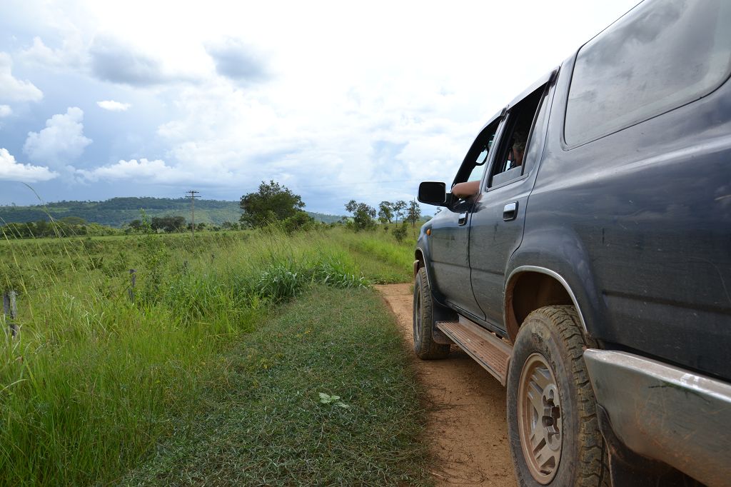 Die letzten Kilometer zu dem Felsen erfolgten auf einer Nebenstraße, für die unser Auto gebaut war. Nur ein Subaru Impreza oder ein Mitsubishi Evo könnten hier mithalten. Auf dem Film erkennt man das Problem für Autoreisende in Brasilien: Alle Nebenstraßen führen zu einer Fazenda, das heißt entlang eingezäunter Felder zu einer Barriere.