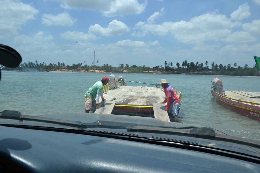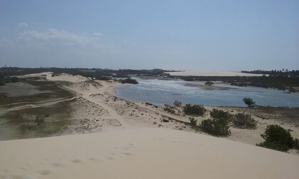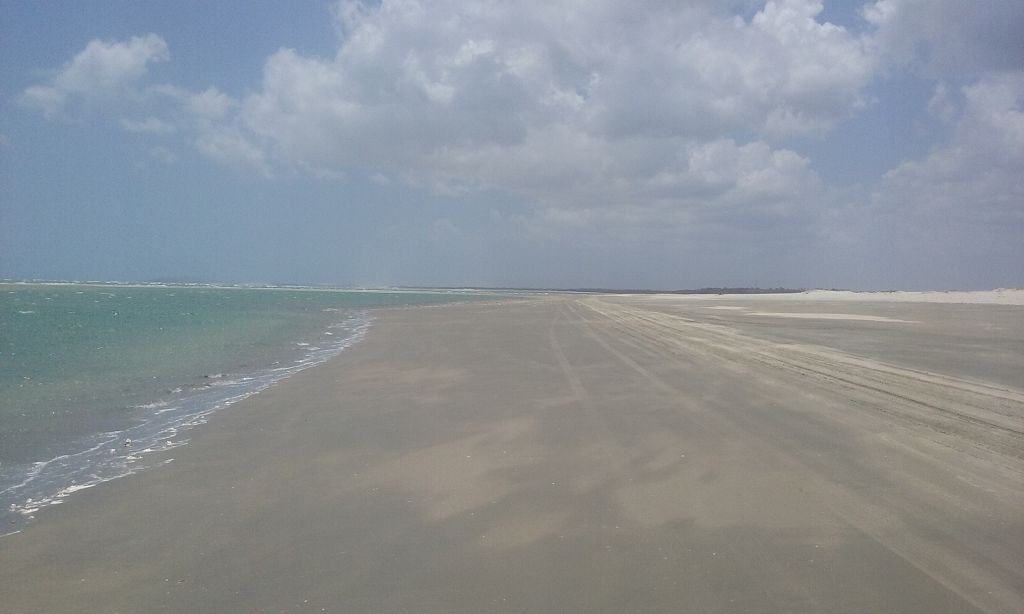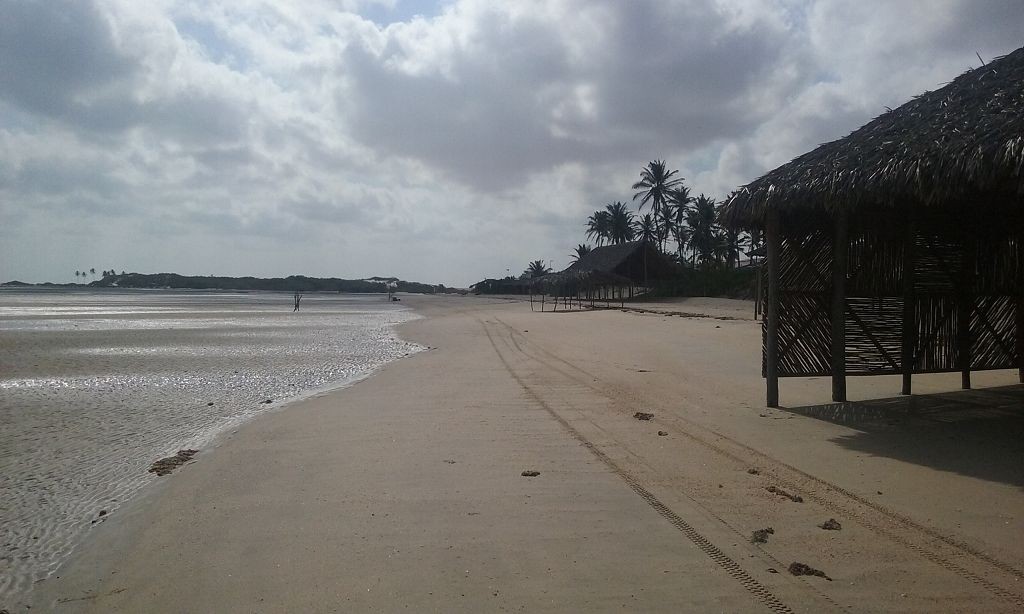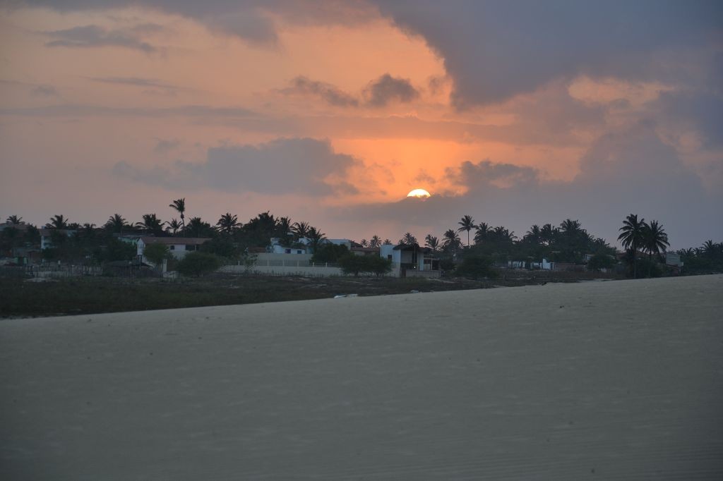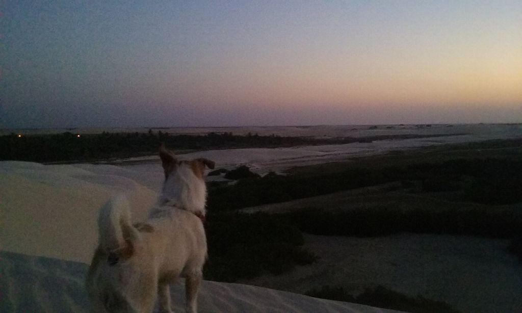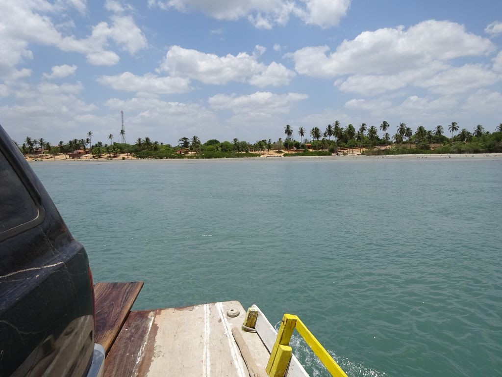 Viel passiert in den letzten Tagen. Freitagmittag, nach viereinhalb Tagen Fahrerei bin ich am Meer angekommen. Mein Ziel war das Fischerdorf Tatajuba, das umgeben von Dünenlandschaften ungefähr auf der Hälfte des Weges von Fortaleza zum Parque Nacional dos Lencois Maranhenses liegt. Dorthin zu kommen war ein wenig trickreich. Erst musste ich von der Hauptstraße abbiegen und einige Kilometer auf einer Hoppelstrecke Richtung Ozean fahren. Dann kam ich an einem Ort an, der zwar am Meer lag, jedoch noch einige Kilometer östlich von meinem Ziel lag. Der Weg nach Tatajuba führte bei Flut über eine Sandstraße durch die Dünen. Bei Ebbe nahm man den Highway über den Strand. Dort stieg ich auch das erste Mal aus dem Wagen. Mein erster Eindruck: ganz schön heiß, windig und sandig. Der Hund rastete total aus. Es gibt zwei Dinge, die er abgöttisch liebt: Schnee und den Strand. Ich entledigte mich meiner Klamotten und sprang ins Meer. Das Wasser war pisswarm. Der Atlantik einmal ganz anders. Kein Vergleich zu den Wassertemperaturen in der Normandie.