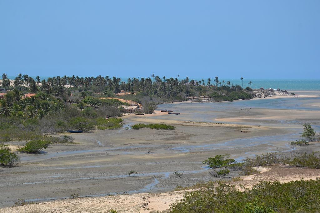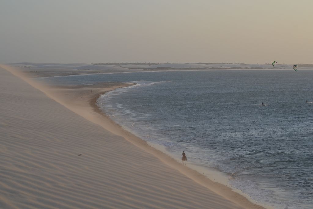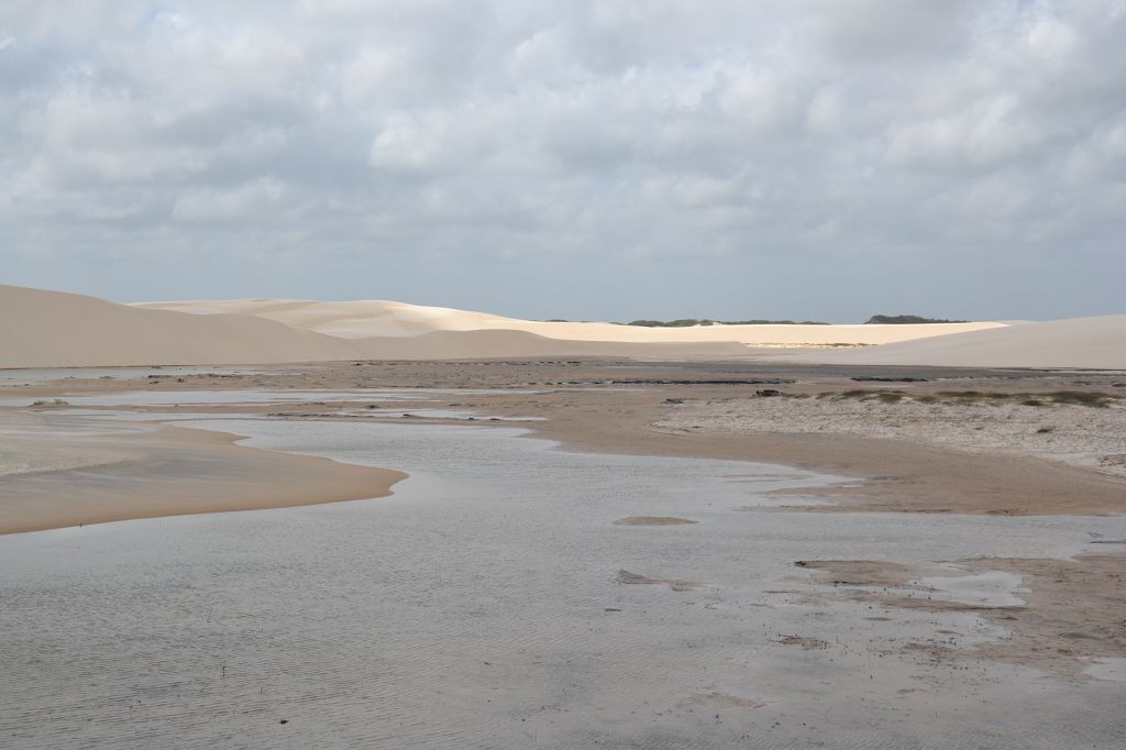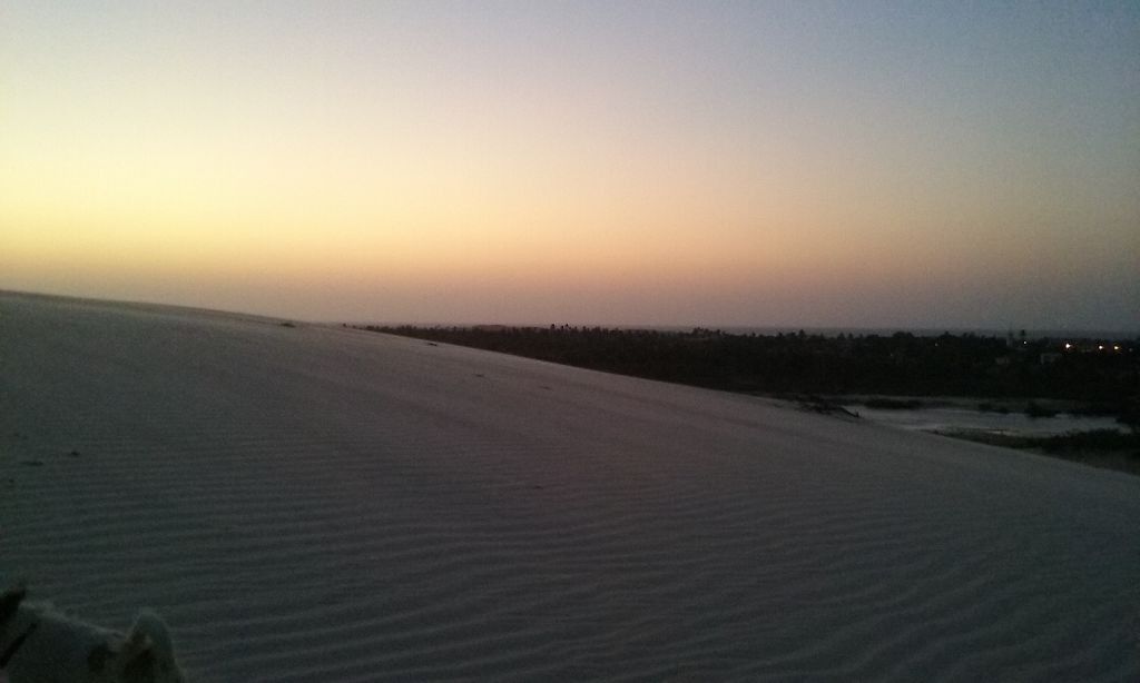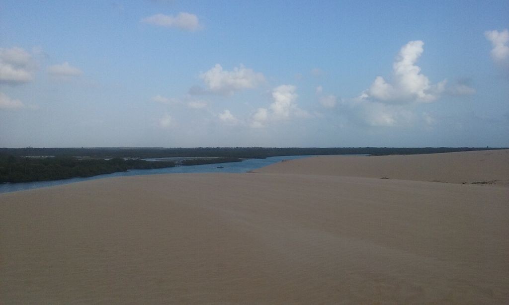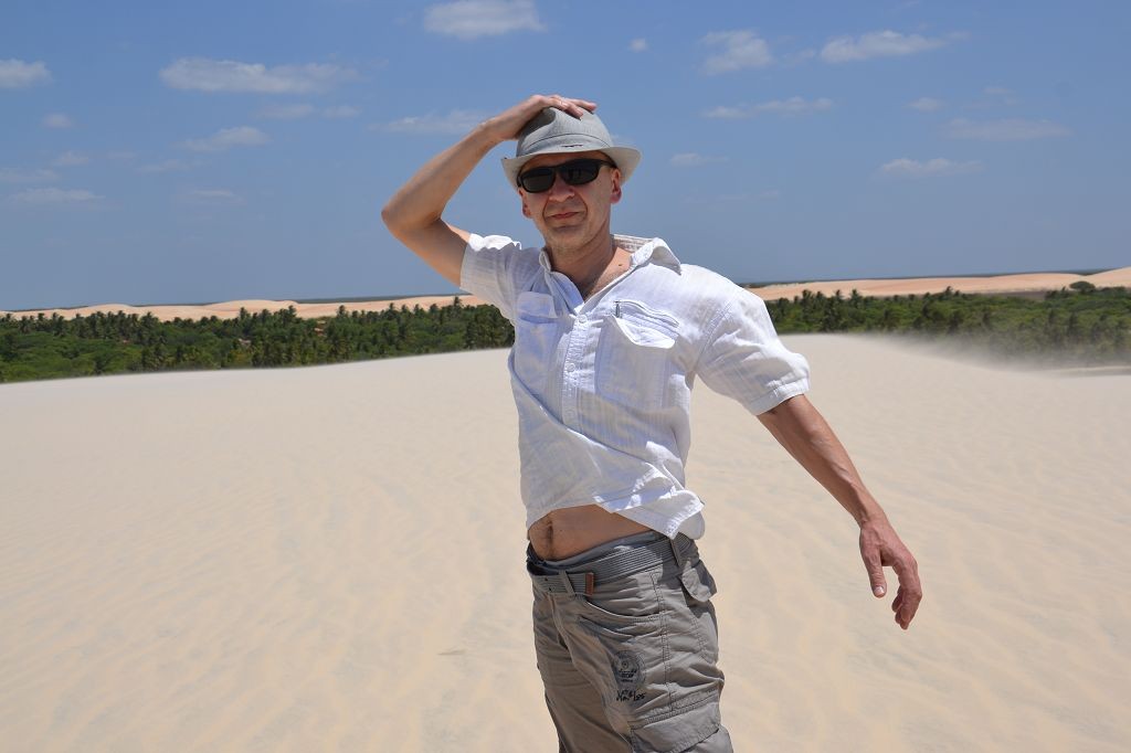 Viel passiert in den letzten Tagen. Freitagmittag, nach viereinhalb Tagen Fahrerei bin ich am Meer angekommen. Mein Ziel war das Fischerdorf Tatajuba, das umgeben von Dünenlandschaften ungefähr auf der Hälfte des Weges von Fortaleza zum Parque Nacional dos Lencois Maranhenses liegt. Dorthin zu kommen war ein wenig trickreich. Erst musste ich von der Hauptstraße abbiegen und einige Kilometer auf einer Hoppelstrecke Richtung Ozean fahren. Dann kam ich an einem Ort an, der zwar am Meer lag, jedoch noch einige Kilometer östlich von meinem Ziel lag. Der Weg nach Tatajuba führte bei Flut über eine Sandstraße durch die Dünen. Bei Ebbe nahm man den Highway über den Strand. Dort stieg ich auch das erste Mal aus dem Wagen. Mein erster Eindruck: ganz schön heiß, windig und sandig. Der Hund rastete total aus. Es gibt zwei Dinge, die er abgöttisch liebt: Schnee und den Strand. Ich entledigte mich meiner Klamotten und sprang ins Meer. Das Wasser war pisswarm. Der Atlantik einmal ganz anders. Kein Vergleich zu den Wassertemperaturen in der Normandie.