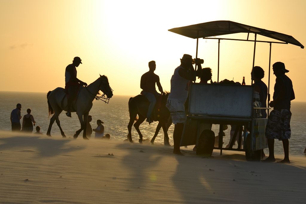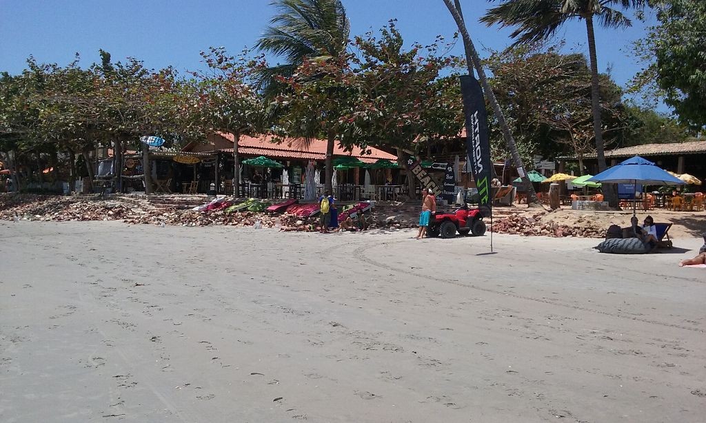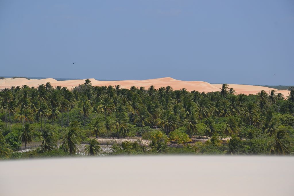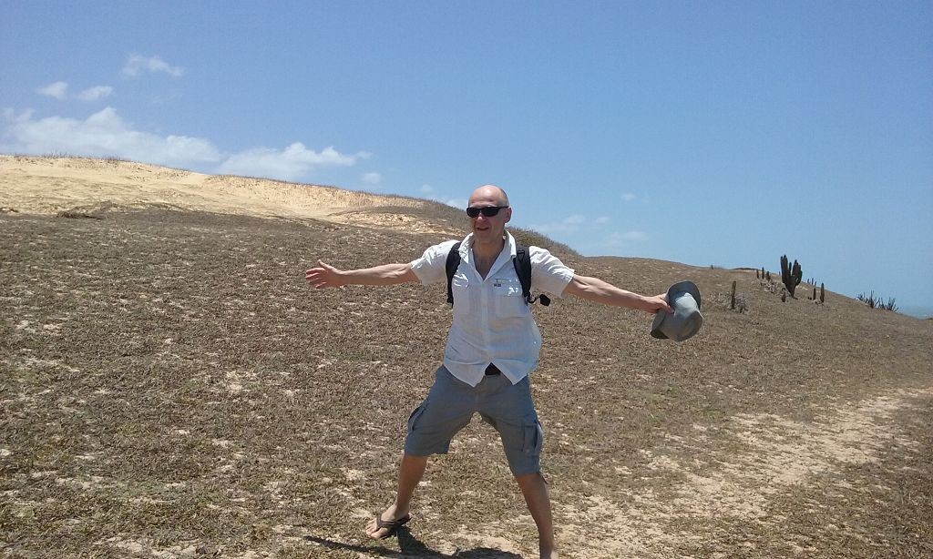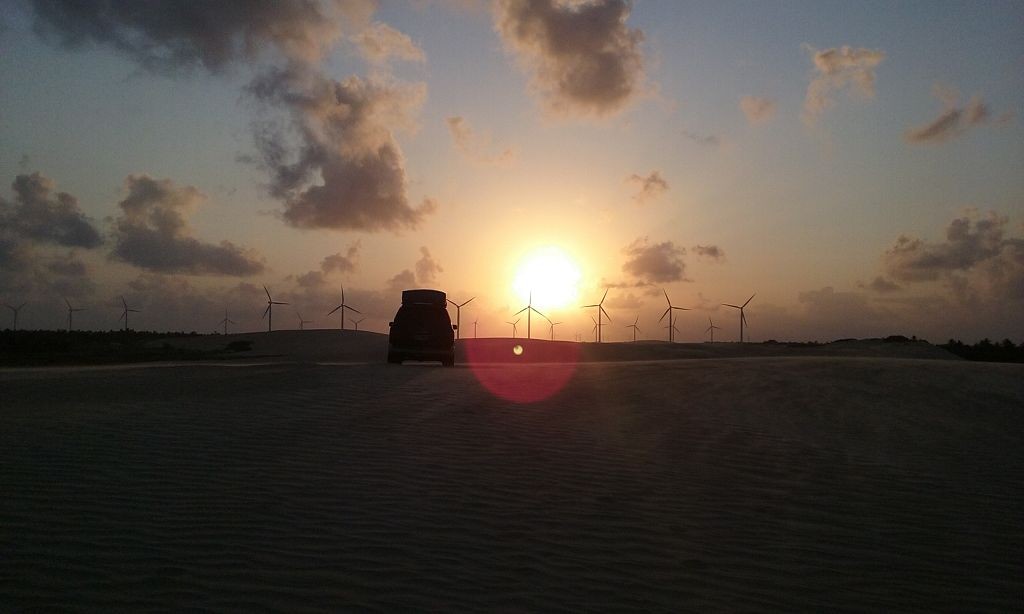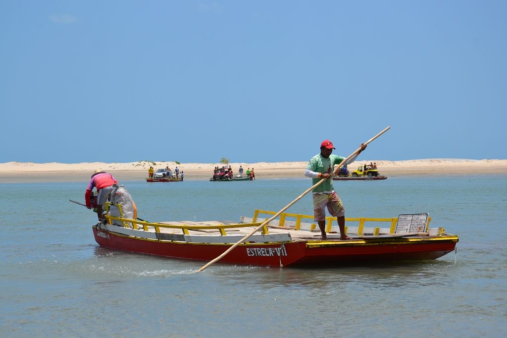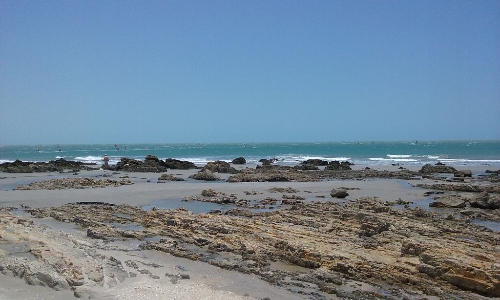 Viel passiert in den letzten Tagen. Freitagmittag, nach viereinhalb Tagen Fahrerei bin ich am Meer angekommen. Mein Ziel war das Fischerdorf Tatajuba, das umgeben von Dünenlandschaften ungefähr auf der Hälfte des Weges von Fortaleza zum Parque Nacional dos Lencois Maranhenses liegt. Dorthin zu kommen war ein wenig trickreich. Erst musste ich von der Hauptstraße abbiegen und einige Kilometer auf einer Hoppelstrecke Richtung Ozean fahren. Dann kam ich an einem Ort an, der zwar am Meer lag, jedoch noch einige Kilometer östlich von meinem Ziel lag. Der Weg nach Tatajuba führte bei Flut über eine Sandstraße durch die Dünen. Bei Ebbe nahm man den Highway über den Strand. Dort stieg ich auch das erste Mal aus dem Wagen. Mein erster Eindruck: ganz schön heiß, windig und sandig. Der Hund rastete total aus. Es gibt zwei Dinge, die er abgöttisch liebt: Schnee und den Strand. Ich entledigte mich meiner Klamotten und sprang ins Meer. Das Wasser war pisswarm. Der Atlantik einmal ganz anders. Kein Vergleich zu den Wassertemperaturen in der Normandie.
